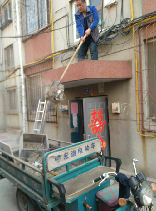 供銷小區(qū)項(xiàng)目管理處工作人員清理天臺(tái)垃圾現(xiàn)場(chǎng)