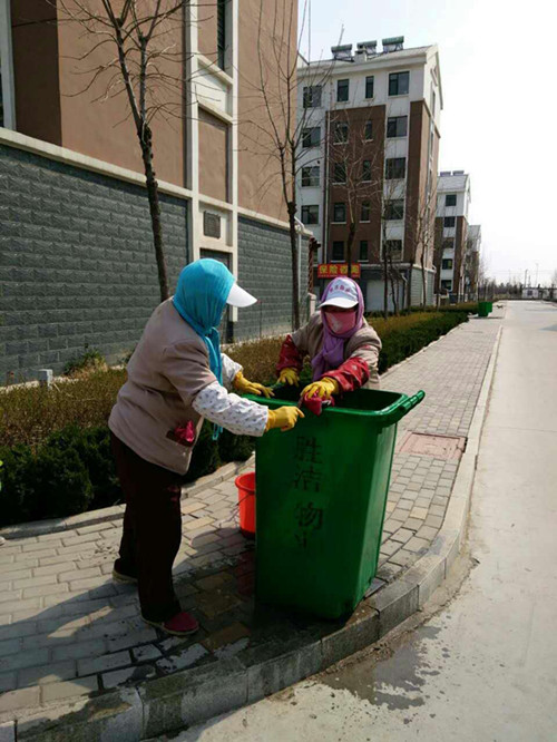 史口社區(qū)項(xiàng)目管理處保潔人員清洗垃圾桶工作現(xiàn)場(chǎng)
