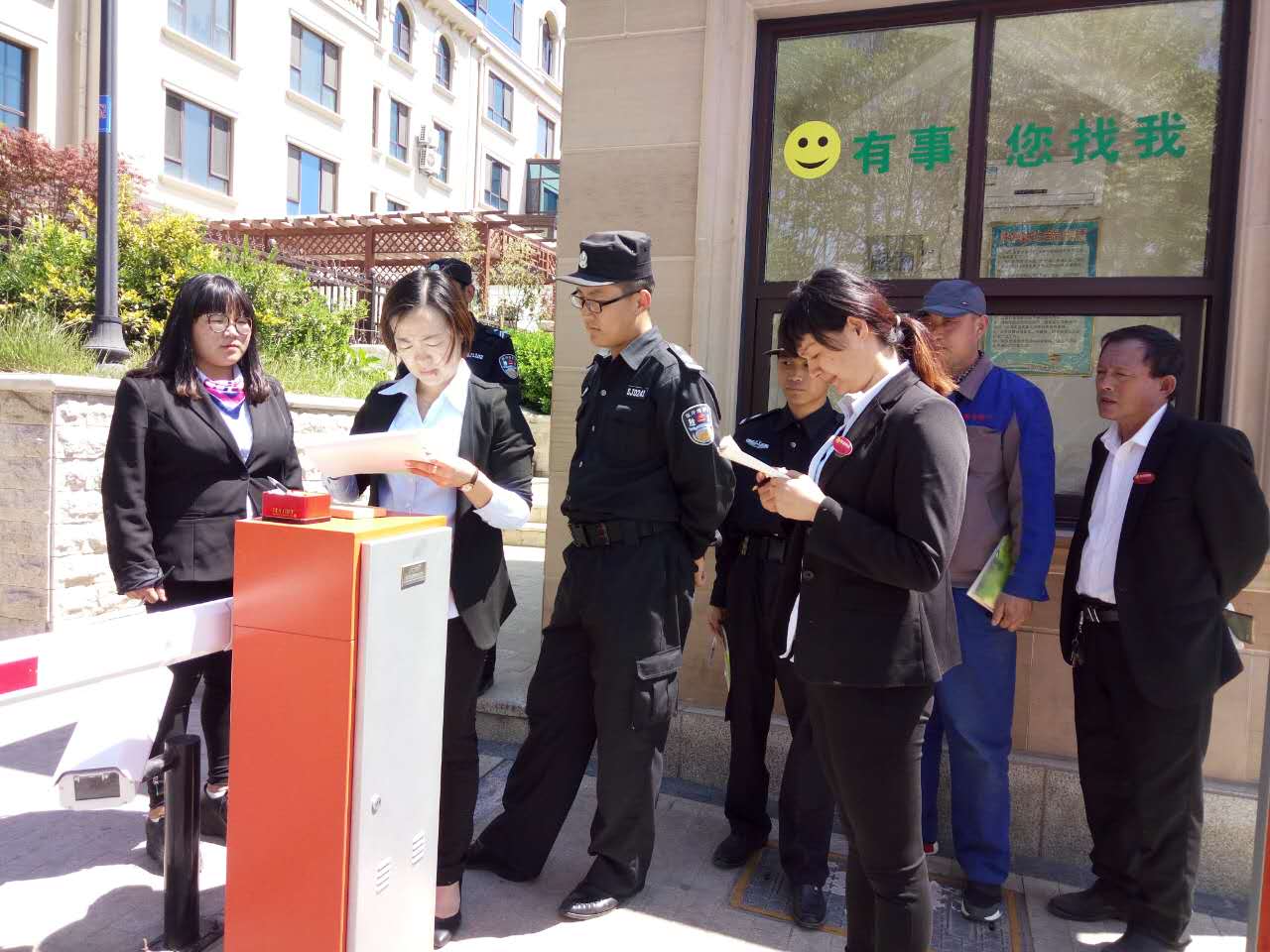 2017年4月27日,帝紗富仕城項目經(jīng)理胡玉娟帶領(lǐng)項目各部門人員對小區(qū)各區(qū)域進(jìn)行了自檢自查。